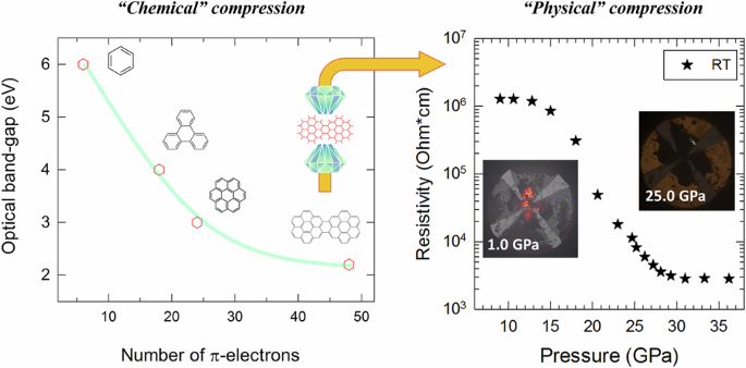 129. Narrowing band gap chemically and physically: conductive dense hydrocarbon.